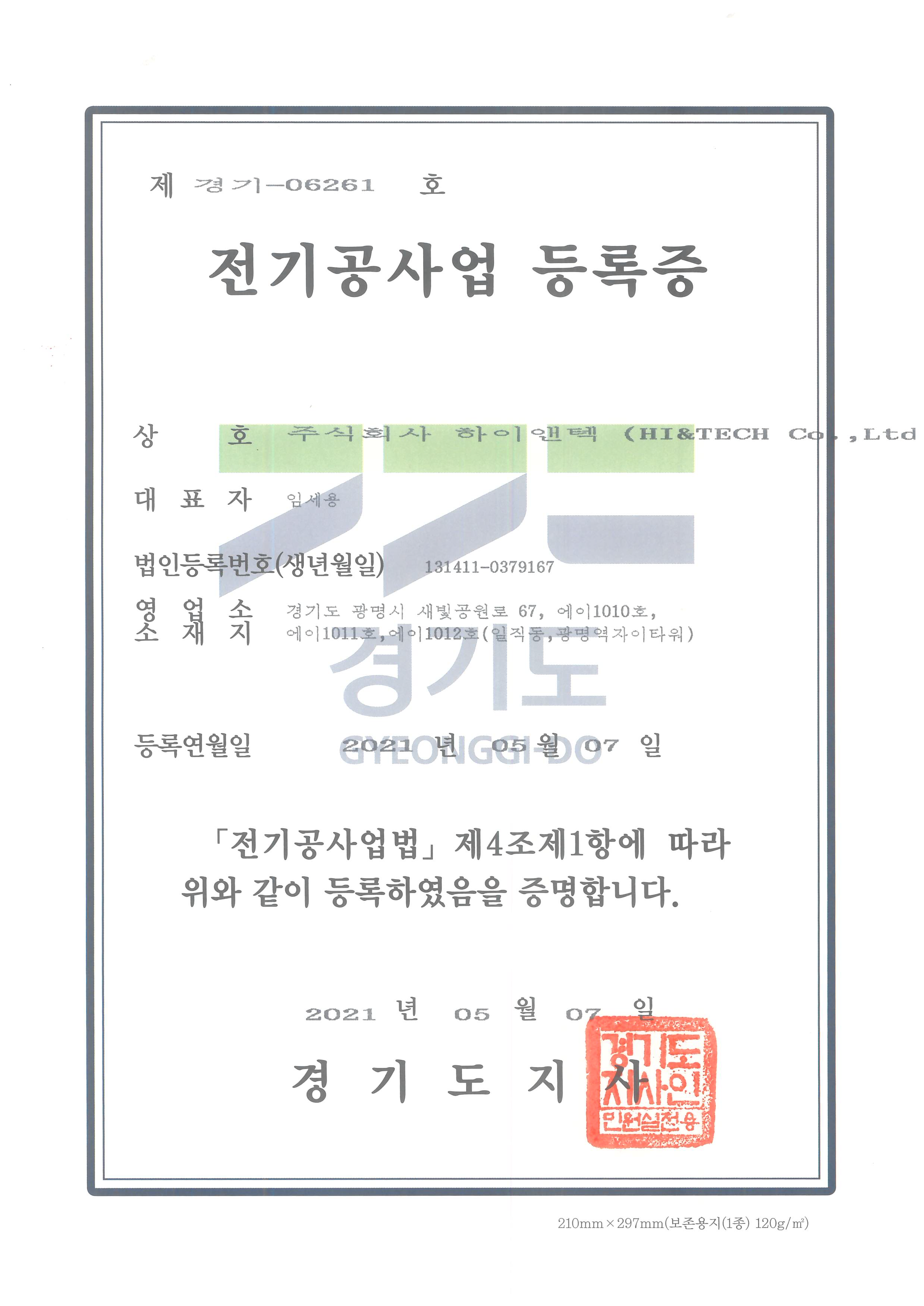 전기공사업 등록증