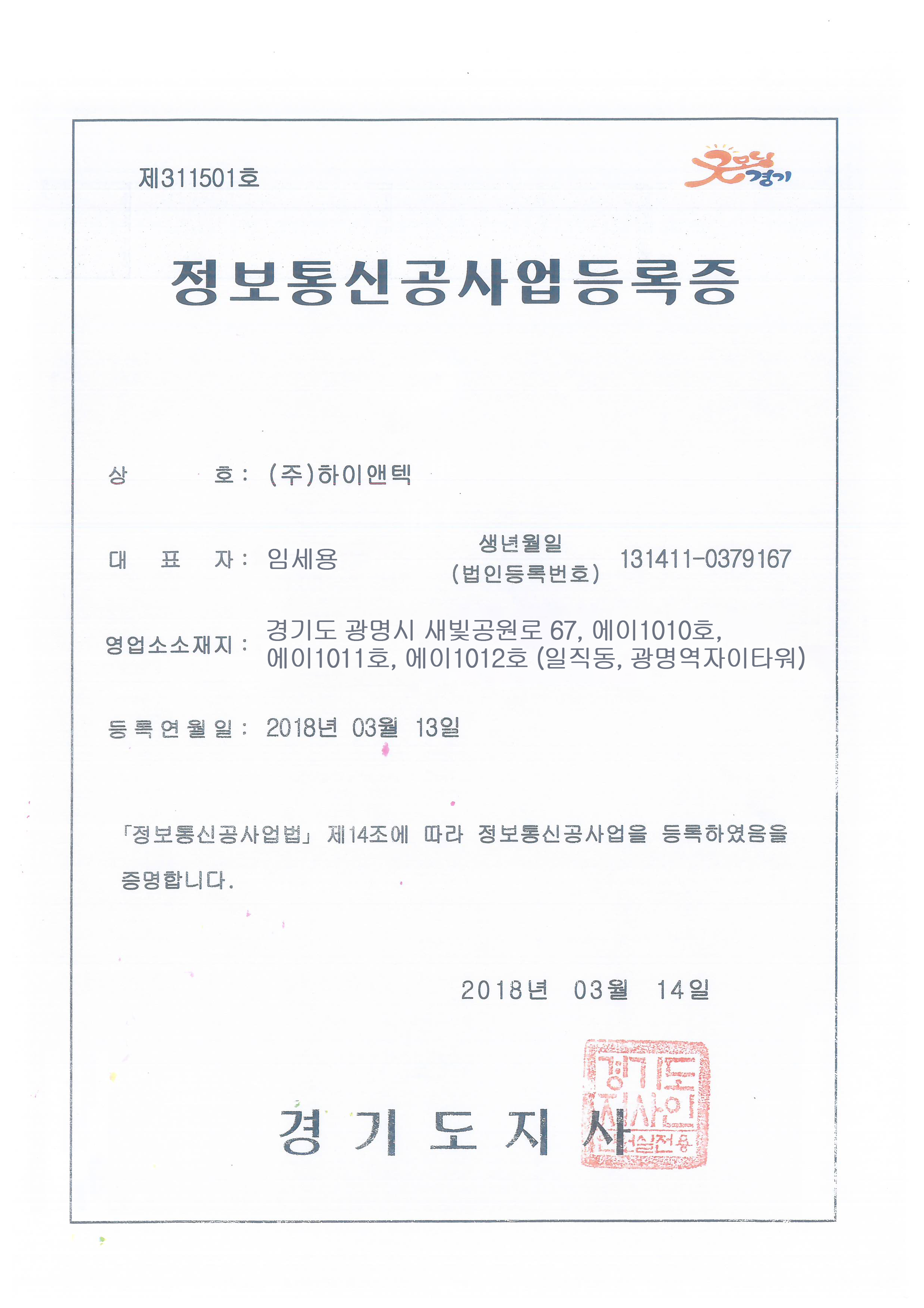 정보통신공사업 등록증