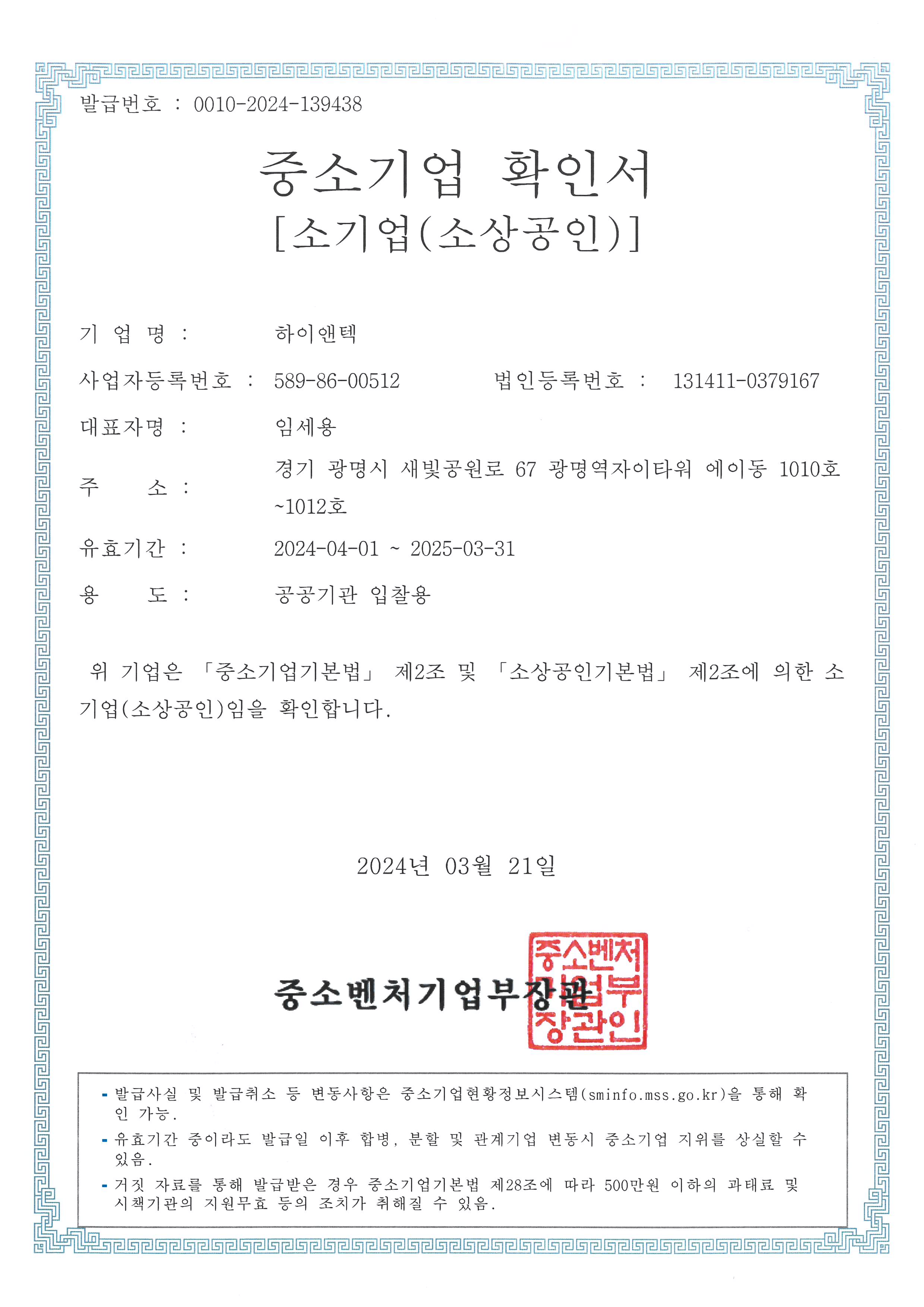 중소기업 확인서