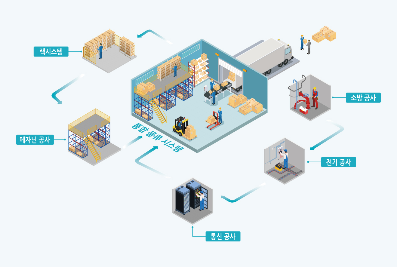 소방, 전기, 통신, 랙시스템, 메자닌 공사 등 원스톱 통합 시스템